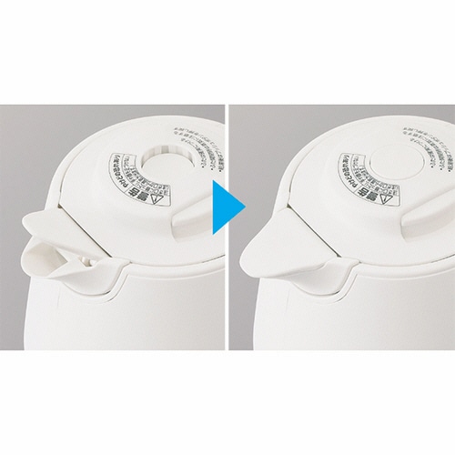 ●ロックボタンと連動し、注ぎ口が開閉。ほこりが入りにくい構造。