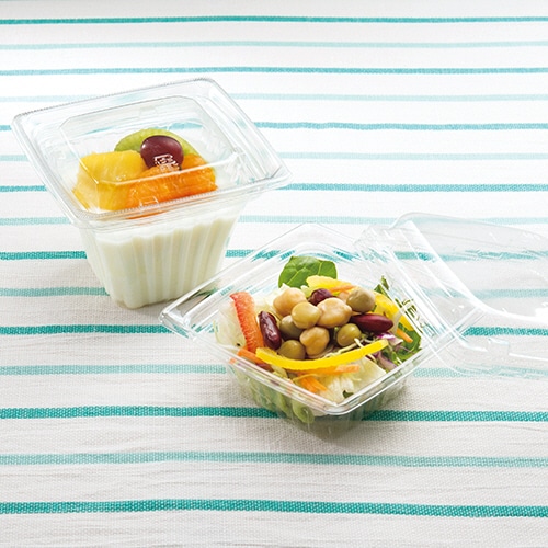 | 商品仕様 | ●種類/デザートカップ ●サイズ/100-38身 ●寸法/W100×D100×H38mm ●材質/A-PET ●耐熱温度/60℃ ●電子レンジ/× ●生産国/日本 |