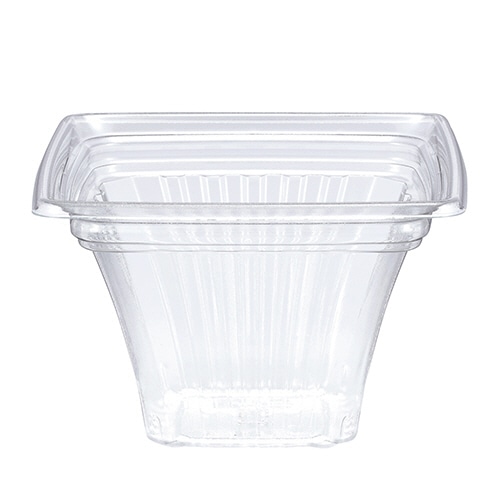 商品仕様 | ●種類/デザートカップ ●サイズ/100-65身 ●寸法/W100×D100×H65mm ●材質/A-PET ●耐熱温度/60℃ ●電子レンジ/× ●生産国/日本 |