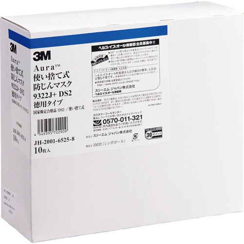 3M Aura 使い捨て式防じんマスク(弁付き) 9322J+DS2 1パック(10枚)