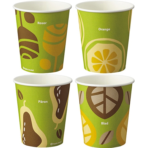 ●北欧イラストレーターのハイセンスな色彩が映えるノスタルジックな4柄アソート。7オンス80個入です。