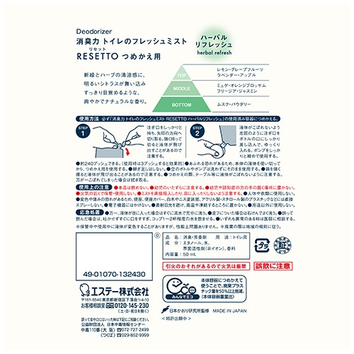 エステー 消臭力 トイレのフレッシュミスト RESETTO つめかえ用 ハーバルリフレッシュ 50mL 1個