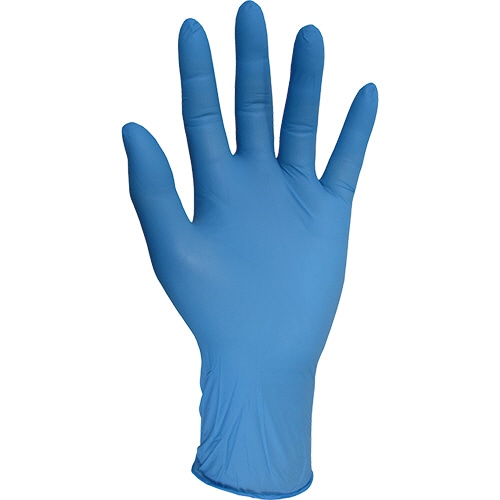 商品仕様 | ●サイズ/L ●寸法/全長245×手のひら周り210×中指長さ84mm ●厚さ/約0.1mm ●パウダー有無/なし ●食品衛生法/適合 ●色/ブルー ●材質/ニトリルゴム |