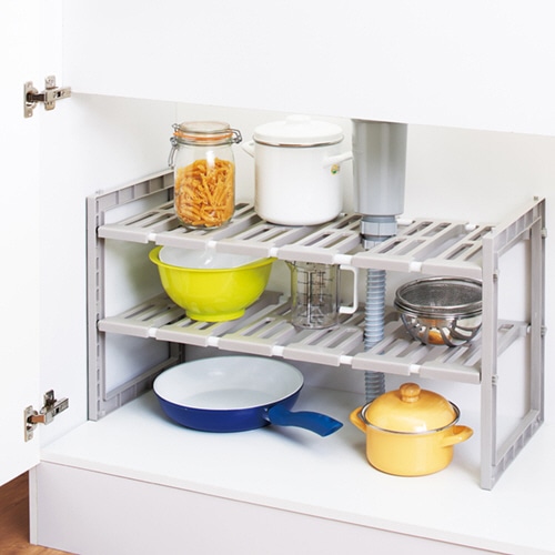 ●収納したいアイテムに合わせて調整すれば、シンク下の空間を無駄なく使えます。