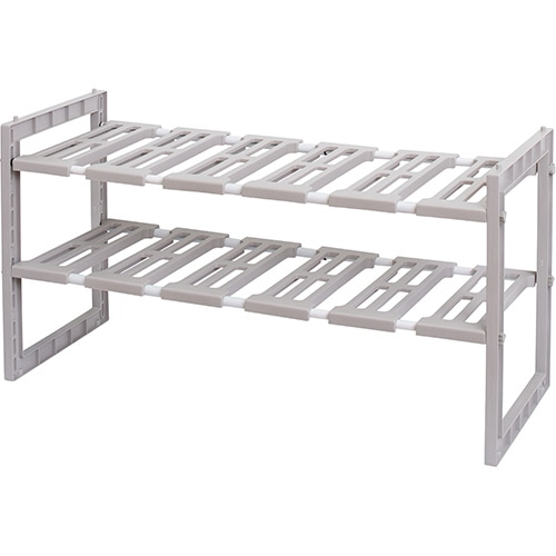 | 商品仕様 | ●外寸/W510~760×D300×H410mm ●重量/2.1kg ●耐荷重/5kg ●材質/棚板・フレーム:再生ポリプロピレン、伸縮パイプ:スチール(エポキシ粉体塗装) ●その他仕様/●棚板:12枚 ●備考/※耐荷重は1段あたり。 ※積み重ねて使用できません。 |