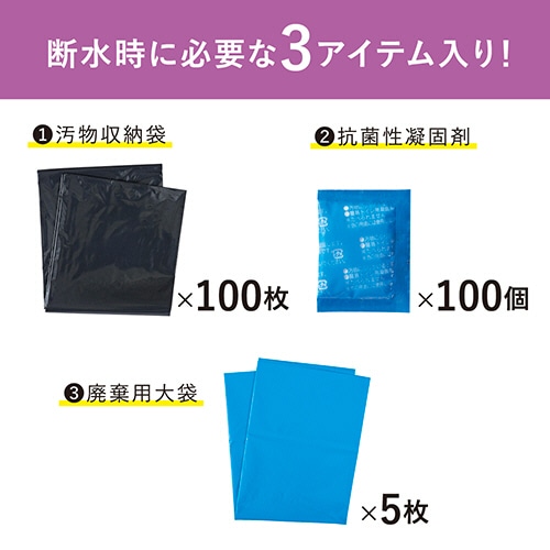 災害時のトイレ問題に備える100回分の簡易トイレセットです。