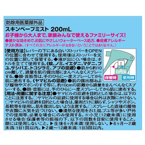 商品仕様 | ●効果/虫よけ ●内容量/200ml ●その他仕様/●防除用医薬部外品 ●備考/※販売名:スキンベープB3 ●シリーズ名/ベープシリーズ |