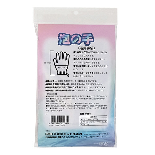 | 商品仕様 | ●種類/浴用手袋 ●寸法/W約13×D18×Hcm ●色/ブルー ●材質/ナイロン100% ●その他仕様/●サイズ:フリーサイズ ●生産国:中国 |