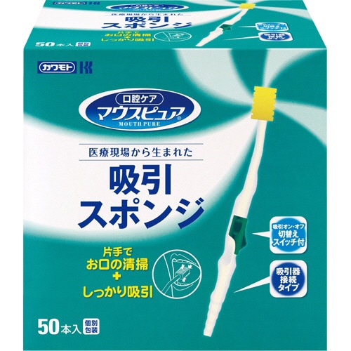 ●先端部と清掃面でしっかり吸引する口腔粘膜用スポンジ。50本入です。