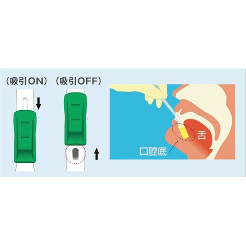 吸引器に接続し、片手で吸引+口腔清掃が同時にできる使いきりタイプ。誤嚥のリスクも軽減。