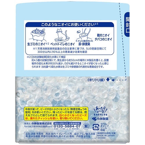 ●各種の消臭作用を持つアミノ酸系消臭成分を配合。透明ビーズがさまざまな気になるニオイを効果的に消臭します。