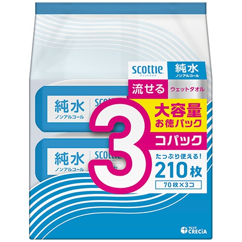 日本製紙クレシア スコッティ 流せるウェットタオル 純水99% ノンアルコール 1セット(210枚:70枚×3パック)
