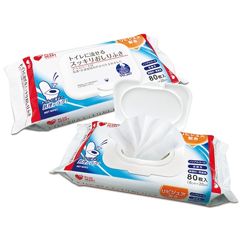 オオサキメディカル プラスハート トイレに流せるスッキリおしりふき 1パック(80枚)