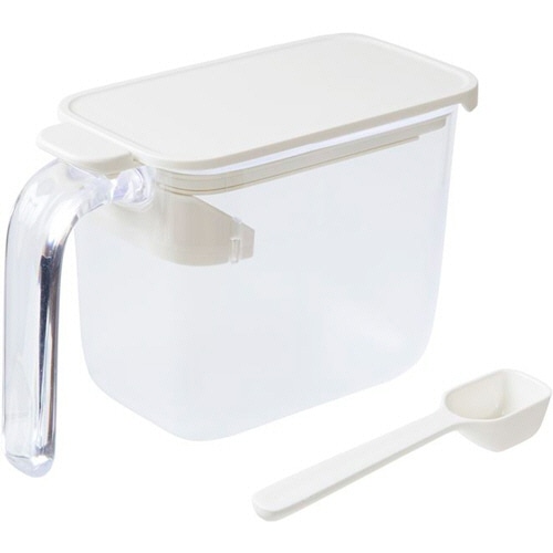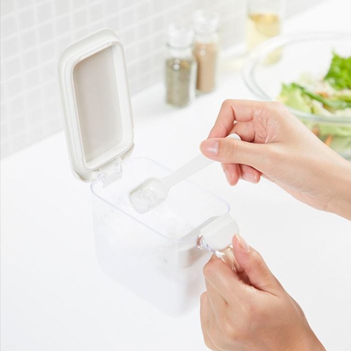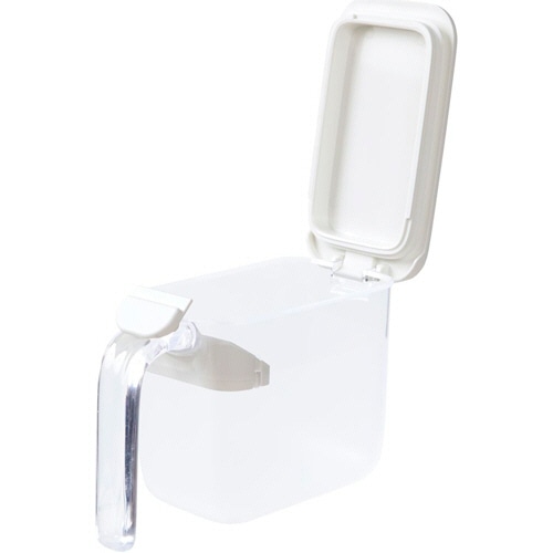 商品仕様 | ●容量/約370ml ●寸法/W約68×D95×H155mm ●色/ホワイト ●材質/ケース:スチロール樹脂、フタ・すりきり板・スプーン・ボタン:ABS樹脂、パッキン:シリコーンゴム ●生産国/ケース・フタ・すりきり板・スプーン・ボタン:日本製、パッキン:中国製 ●食洗機/不可 ●食器乾燥機/不可 ●その他仕様/●耐熱温度:ケース/約70℃、フタ・すりきり板・スプーン・ボタン/約80℃、パッキン/約200℃ ●耐冷温度:約0℃ |