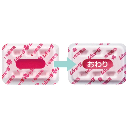 商品仕様 | ●用途/引き出し衣装ケース用 ●標準使用量/引き出し・衣装ケース50L:2個、75L:3個 ●使用可能日数/使用開始後 約1年間(温度、収納容器及び使用状態等で一定しない場合がある。) ●有効成分/エンペントリン(防虫成分)、フェノキシエタノール(防虫成分)、スルファミド系防カビ剤 ●その他仕様/●保存方法:温度が低く、直射日光の当たらない場所に密封したまま保存すること。 ●備考/※パッケージに記載されている使用量を守って使用する。 ※密閉性のある収納容器で使用する。 ※衣類の入れ替えをする時は、部屋の換気をする。 ●シリーズ名/ムシューダ |