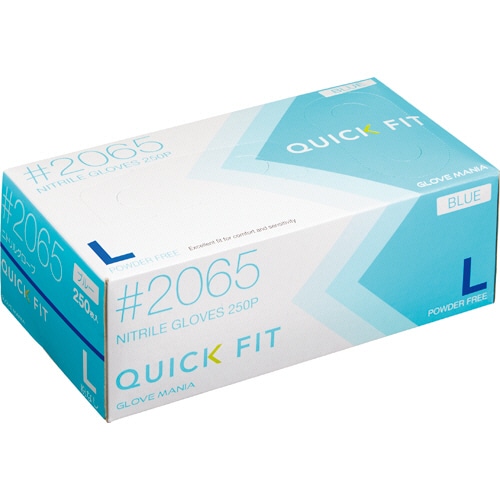 川西工業 ニトリルグローブ クイックフィット 粉なし ブルー L #2065 1箱(250枚)