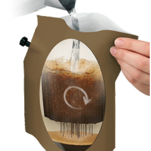 ●特許取得のパッケージとフィルターで、深みとコクのある美味しいコーヒーを抽出。フィルターの中で粉状のコーヒーが円を描いて舞うことで簡単・効果的に香りとコクが抽出されます。
