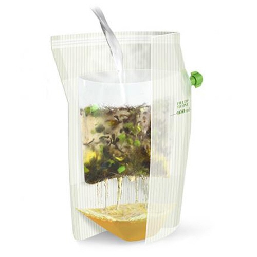 お湯を入れて注ぐだけ。注ぎ口のついた、フィルター内蔵フレーバーティーパック。