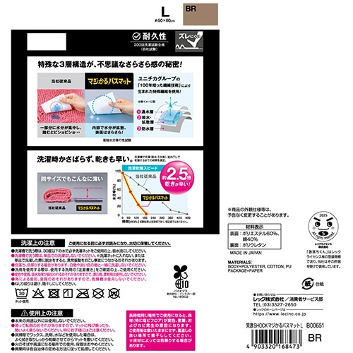 レック 笑激SHOCK マジかるバスマット Lサイズ 約50×80cm ブラウン B00651-BR 1枚