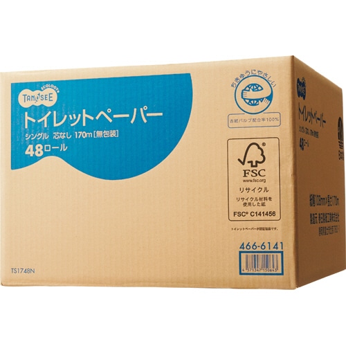 TANOSEE トイレットペーパー 無包装 シングル 芯なし 170m 1ケース(48ロール)