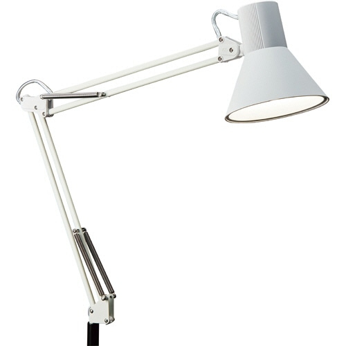 商品仕様 | ●寸法/約セードΦ190×アーム450+450mm ●重量/1.4kg ●色/ホワイト ●タイプ/クランプ式 ●全光束/624lm ●直下照度/1414lx ●色温度/昼白色5000K ●定格寿命/40000時間 ●光源/E26 LED電球 ●クランプ幅/~55mm ●消費電力/7.3W ●その他仕様/●演色性:Ra80 ●JIS:AA形相当 ●保証期間/1年 |