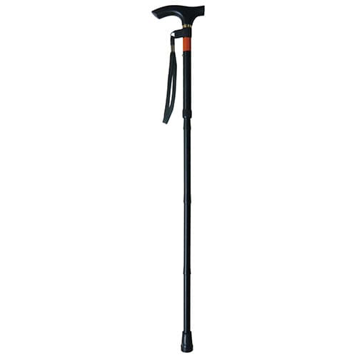 | 商品仕様 | ●種類/折りたたみ式 ●全長/81.5~91.5cm ●調節/5ポジション ●色/ブラック ●重量/300g ●材質/本体:アルミニウム合金、持ち手:天然木 ●パイプ径/上部:1.9cm、下部:1.6cm ●付属品/ストラップ |