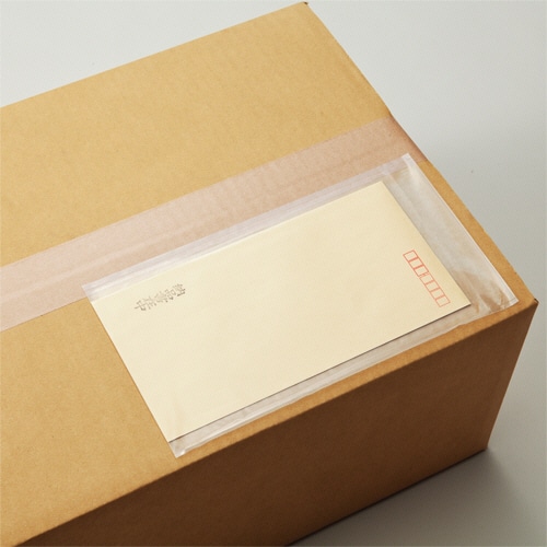 ●ビニールのすき間に伝票などをさしこんで、裏面の剥離紙をはがしてシール面を下にして接着してください。