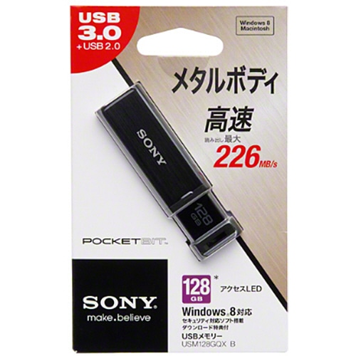 ソニー USBメモリー ポケットビット QXシリーズ ノックスライド式高速 128GB ブラック USM128GQX B 1個