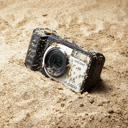 ●小型軽量ながらレンズ前面に強化保護ガラス、要所にプロテクターを装備。米国国防総省の調達規格「MILStandard810F」に準拠したテストにおいて、6面・8角・12稜の26方向で高さ2.0mからの落下に耐えるタフさ。電源ON時の落下にも対応。