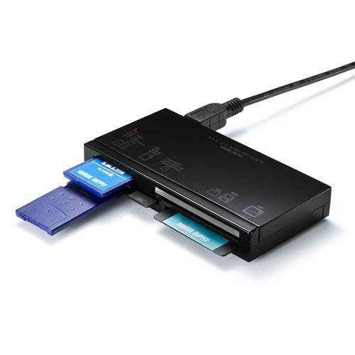 スロットが全て前面について使いやすい、4つのスロットを同時に認識できるマルチカードリーダー。