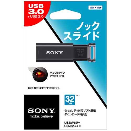 ソニー USBメモリー ポケットビット Uシリーズ 32GB ブラック USM32GU B 1個