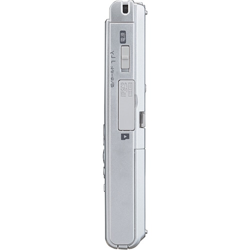 | 商品仕様 | ●寸法/W39×D18×H111.5mm ●質量/77g ●色/シルバー ●内蔵メモリー/4GB ●音声記録形式/MP3形式 ●録音時間/[内蔵メモリー時]128kbps:約65時間・64kbps mono:約131時間・8kbpsmono:約1040時間 ●スピーカー/φ20mm丸型ダイナミックスピーカー内蔵 ●最大出力/ヘッドホン:3mW+3mW(16Ω負荷時)、スピーカ:250mW(スピーカ8Ω) ●入力端子/マイクジャック(φ3.5mmインピーダンス2kΩ) ●出力端子/イヤホンジャック(φ3.5mmインピーダンス8Ω以上) ●対応メモリー/microSDカード(2~32GB)、microSDHC ●パソコン接続/USB直結 ●電源/単4形アルカリ乾電池2本、またはニッケル水素充電池2本(本体内充電はできません) ●電池持続時間(録音/再生)/[内蔵マイク録音(アルカリ電池使用)時]128kbps:約41時間・64kbps mono:約48時間・8kbps mono:約110時間、[内蔵スピーカー再生(アルカリ電池使用)時]128kbps:約15時間・64kbps mono:約15時間・8kbps mono:約24時間、[イヤホン再生(アルカリ電池使用)時]128kbps:約70時間・64kbps mono:約73時間・8kbps mono:約90時間 |