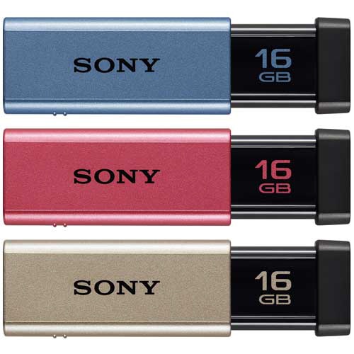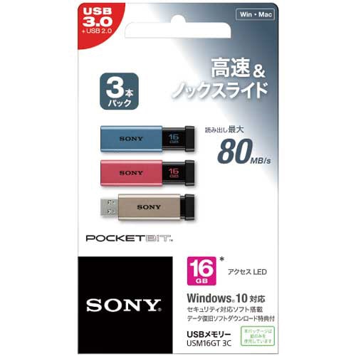 ソニー USBメモリー ポケットビット Tシリーズ カラーミックスパック 16GB ブルー・ピンク・ゴールド キャップレス USM16GT 3C 1セット(3個
