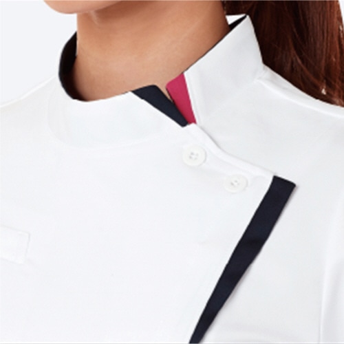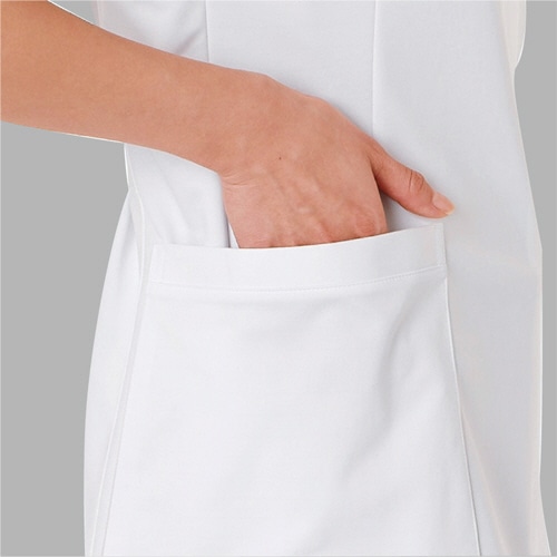 ●洗練されたデザインのケーシー型白衣ジャケット。