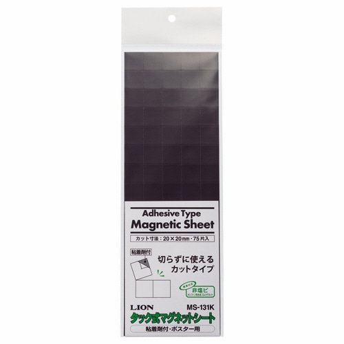 ライオン事務器 タック式マグネットシート カットタイプ タテ20×ヨコ20×厚さ0.7mm MS-131K 1パック(75片)