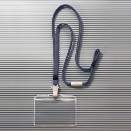 ライオン事務器 つりさげ名札 ヨコ型 ソフトタイプ 平ひも グレー N-73MR 1個