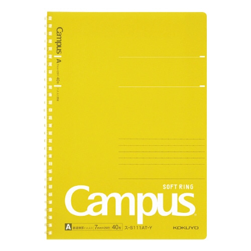 コクヨ キャンパス ソフトリングノート セミB5 A罫 40枚 イエロー ス-S111AT-Y 1冊