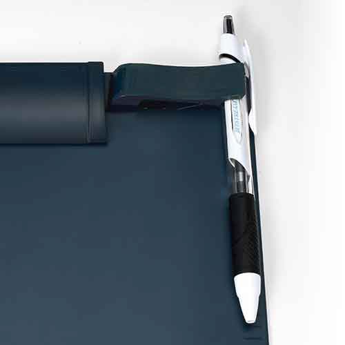 ●片手でクリップ開閉、樹脂製クリップボード。A4ヨコ・色はネイビーです。