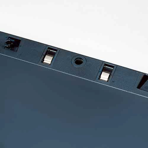 ●片手でクリップ開閉、樹脂製クリップボード。A4ヨコ・色はグレーです。