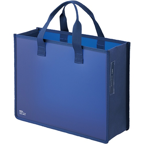 | 商品仕様 | ●サイズ/A4 ●色/インディゴブルー ●寸法/W360×D120×H277mm ●材質/本体:ポリプロピレン(生地厚0.8mm)、ポリエステル ●その他仕様/●折りたたみ時寸法:約W360×D20×H277mm ●耐荷重:8kg ●備考/※寸法はハンドル除く ●シリーズ名/soeru |
