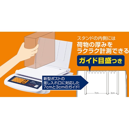●スタンドの内側には荷物の厚みをラクラク計測できる7cmと3cmのメモリ付。