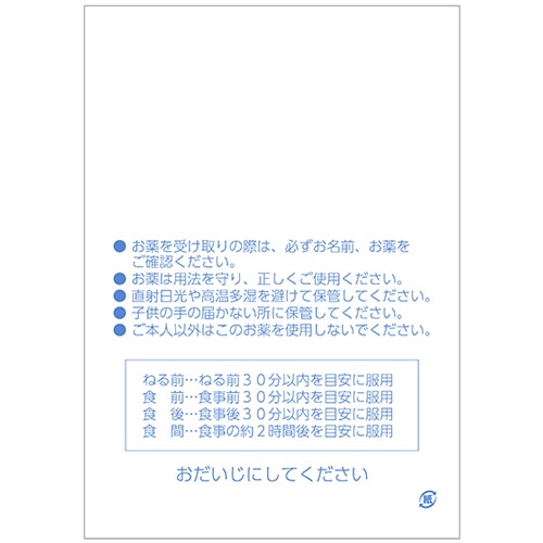 ●文字色は視認性の高い「青」を採用したA5サイズの手書き薬袋、100枚入。