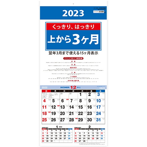 | 商品仕様 | ●タイプ/壁掛けカレンダー ●寸法/タテ765×ヨコ350mm ●枚数/6枚(表紙共) ●材質/上質紙 ●重量/約210g ●その他仕様/●表示:旧暦、六曜 ●個装形態:箱入(タテ430×ヨコ52×高さ52mm) ●製本:紙製本 ●生産国:日本 |
