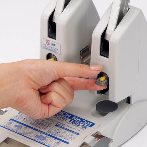 商品仕様 | ●色/グレー ●穴あけ枚数/110枚 ●穴数/2穴 ●穴間隔/80mm ●穴径/6mm ●穴奥行/9mm ●ゲージ対応サイズ/A3ヨコ~A5タテ、B4タテ~B6タテ ●交換ロット刃/200-03 ●交換用刃受け/200-05 ●寸法/W190×D250×H158mm ●重量/2300g ●その他仕様/●パイプ錐 ●フリータイプセンター割出しゲージ付 ●A4用紙4穴対応(888表示) ●備考/※穴あけ枚数:64g/平方メートルのPPC用紙を使用した場合。 |