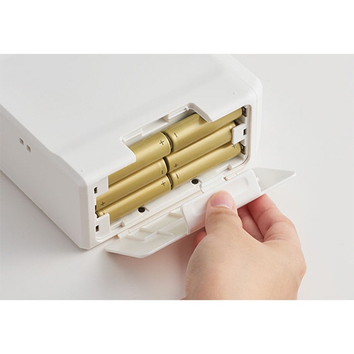 ●本体は、単3形アルカリ乾電池×6本(別売)または単3形充電式ニッケル水素電池×6本(別売)で駆動するため、場所を選ばずにどこでもラベルを作ることができます。