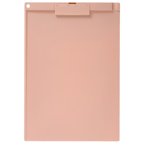 ●かさばりにくい薄型クリップ。ピンクのA4タテ型・短辺とじです。