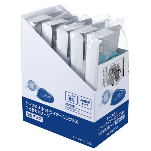 コクヨ テープのり ドットライナーロング50 しっかり貼るタイプ つめ替え用 10mm×50m タ-D4300-10X5 1パック(5個)