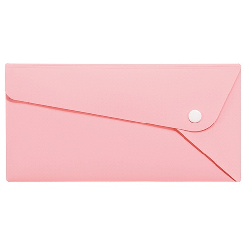 ●A4三つ折りサイズのPPカラーホルダー「PELTO」、色はペールピンクです。