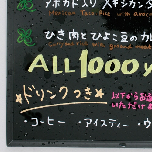 ●ブラックボードに書き消しできる。簡単に消せる水拭きタイプ。