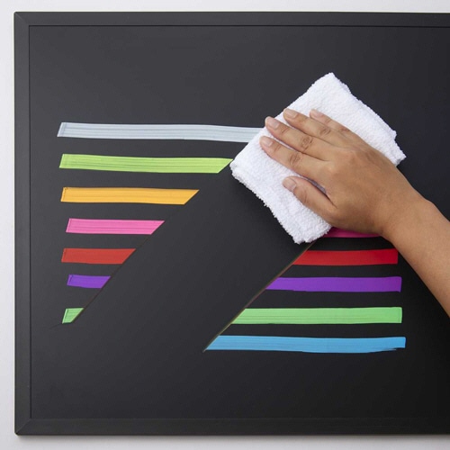 ●ブラックボードに書き消しできる。簡単に消せる水拭きタイプ。